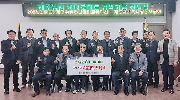 제주농협 하나로마트협의회(회장 강병진)는 지난 8일 제주축협 한우플라자 회의실에서 농·축협 조합장 22명이 참석한 가운데 2024년 하나로마트협의회 정기총회를 개최하고 공익기금 전달식을 가졌다.