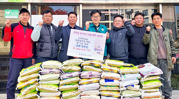 서귀포시 보목마을회(회장 강광언)는 지난 14일 이·취임식에서 화환 대신 받은 축하 쌀(10㎏) 60포를 어려운 이웃에게 전달해 달라며 송산동주민센터(동장 김종삼)에 기탁했다.