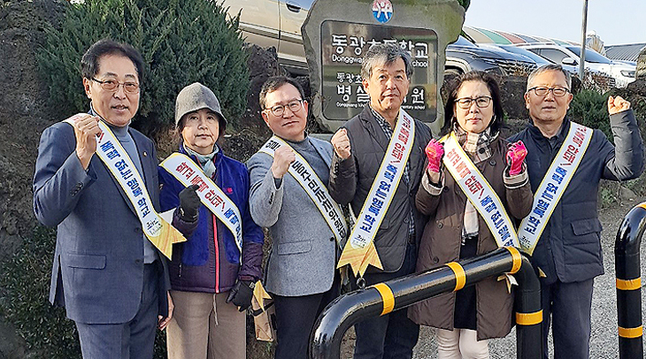 제주시 일도2동 주민자치위원회(위원장 고광언)는 18일 관내 동광, 인화, 일도초등학교 주변에서 학교폭력예방 및 교통질서확립 캠페인을 전개했다.