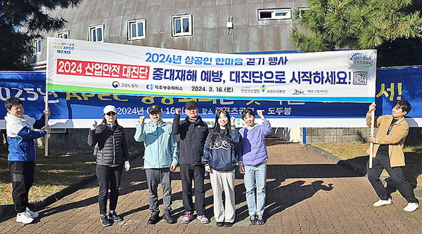 안전보건공단 제주지역본부(본부장 박상복)와 제주상공회의소(회장 양문석)는 지난 16일 제주시 용담레포츠공원에서 제주특별자치도·안전보건공단 제주지역본부·제주상공회의소 회원 상공인과 임직원, 유관기관 관계자 등 400여 명이 참석한 '2024년 상공인 한마음 걷기 행사'에서 APEC 제주유치 및 산업안전 대진단 캠페인을 진행했다.