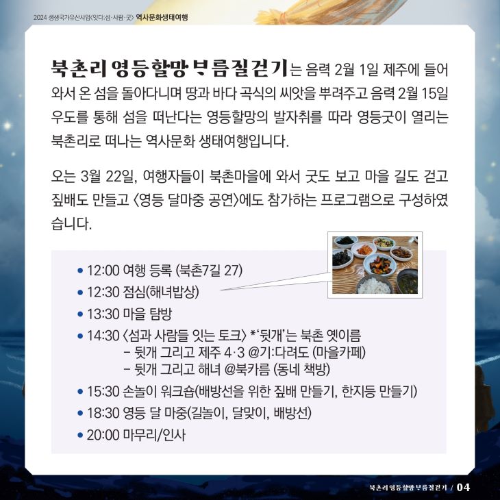 영등할망 발자취 따라 북촌리로 떠나는 역사문화생태여행
