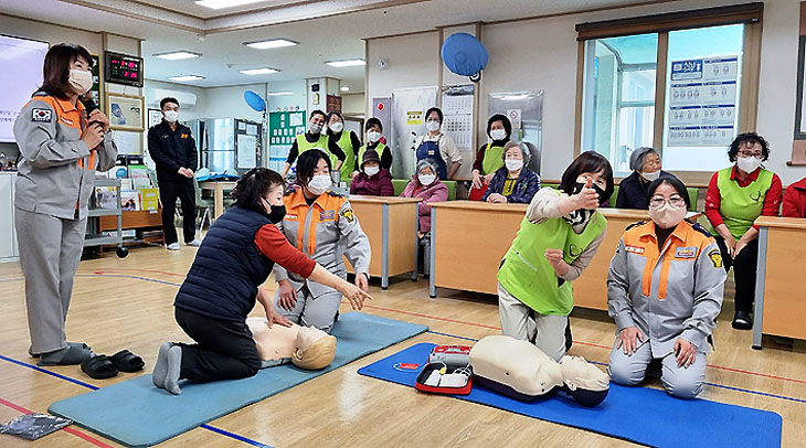 이날 교육은 찾아가는 응급처치 교육의 일환으로 심정지 환자의 소생률을 높이기 위한 이론 강의와 마네킹 활용 실습이 진행됐다.