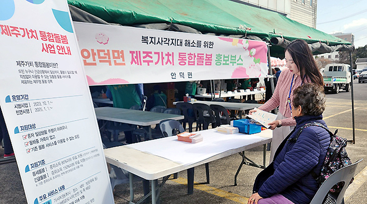 서귀포시 안덕면(면장 오승언)은 지난 19일 안덕농협 하나로마트 일대에서 지역주민을 대상으로 '제주가치 통합돌봄' 홍보 부스를 운영해 사업 안내와 상담을 실시했다.