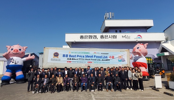 제주양돈농협은 지난 22일 양돈농협 수출육가공공장에서 제주산 돼지고기 100두(8t) 홍콩 수출 상차식을 가졌다.