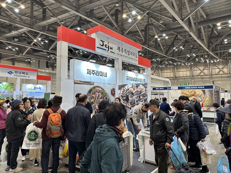'대한민국 대표 특산물 직거래 박람회'를 찾은 관람객들이 제주지역 업체들이 입점한 부스에서 제주산 특산물에 관심을 보이고 있다.