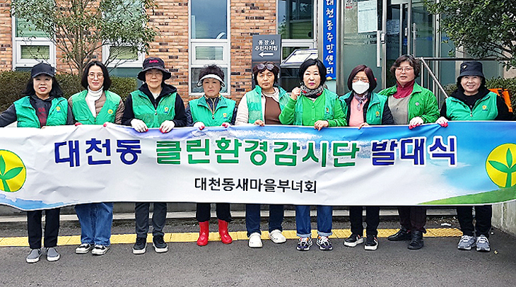 서귀포시 대천동새마을부녀회(회장 이정심)는 지난달 27일 대천동주민센터에서 클린환경감시단 발대식을 개최하고 월 2회 클린하우스 환경 정비, 쓰레기 불법 투기 행위 감시, 올바른 분리배출을 위한 주민 계도 등을 이어가기로 했다.