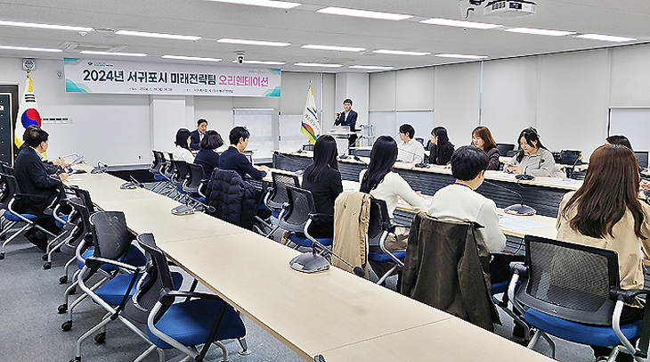 서귀포시는 지난달 28일 7·8·9급의 젊은 공직자를 중심으로 구성된 시책 개발 동아리인 '미래전략팀' 오리엔테이션을 열고 2024년 시책 개발 활동을 시작했다.