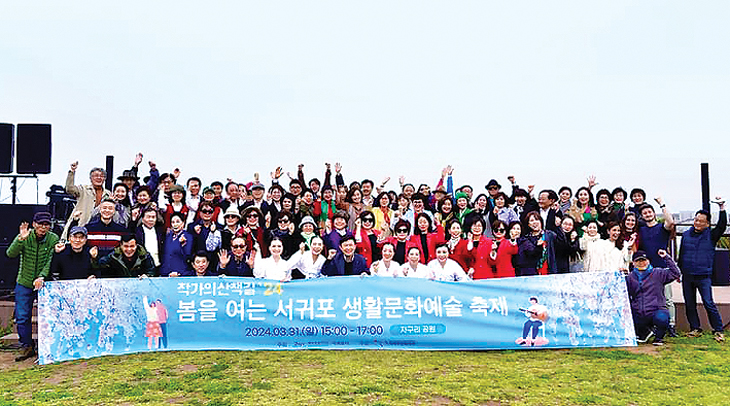 작가의 산책길을 홍보하고 지역 문화예술인의 활동 기회 확대를 위한 '2024 봄을 여는 서귀포 생활문화예술 축제'가 지난달 31일 서귀포시 주최, 지역주민협의회(회장 장병순) 주관으로 자구리공원에서 열렸다.