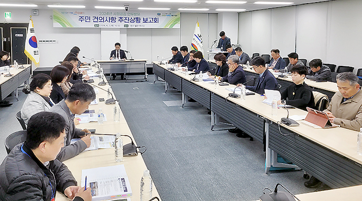 이날 보고회에서는 주민 건의 사항 199건의 처리 상황을 점검하고 주민 불편 해소를 위해 부서 간 의견 수렴과 토론이 이루어졌다.
