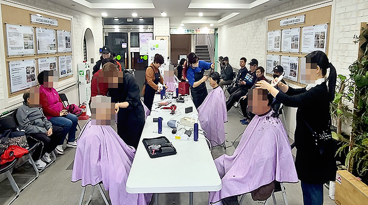 이·미용서비스는 대한미용사회서귀포지부 회원들의 재능기부로 매월 이뤄지고 있으며 거동이 불편해 이·미용실 방문이 어려운 어르신들을 비롯해 많은 지역주민이 참여하고 있다.