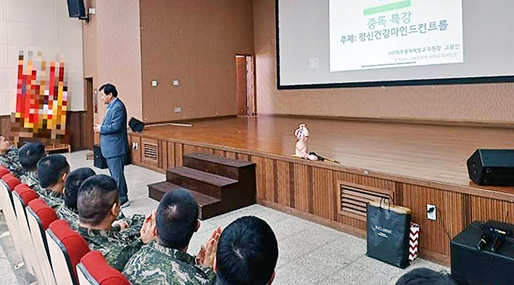 해병대 제9여단은 지난 1일 중독전문가 고광언 (사)제주중독예방교육원장을 초청해 병사들을 대상으로 마약류에 대한 폐해를 알리는 예방교육을 실시했다. 이날 고 원장은 마약류에 대한 경각심을 알리는 한편 올바른 약물사용법을 교육했다.