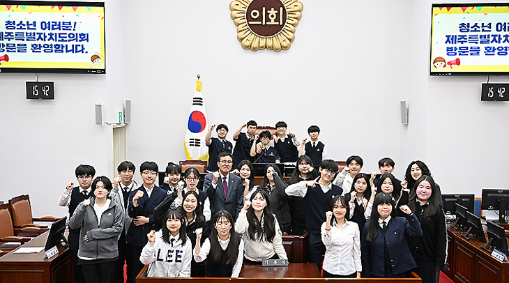 제주특별자치도의회(의장 김경학)는 4일 본회의장에서 제주중앙고등학교 2학년 학생 26명을 대상으로 의정체험 기회를 제공했다.