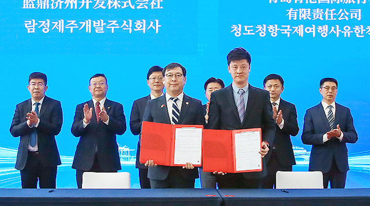 제주신화월드와 산둥항구크루즈문화관광그룹 산하의 국영기업인 칭강여행사(대표 관레이)는 지난 1일 중국 칭다오항에서 관광·문화 교류를 강화하고 상생 협력 모델을 발굴하기 위한 업무협약을 체결했다.