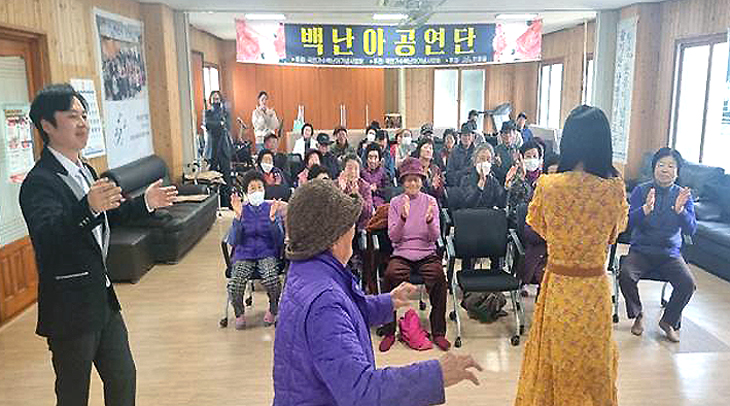 백난아기념사업회(회장 오경철)는 지난 5일 제주시 한림읍(읍장 강봉찬) 상명리경로당에서 마을 어르신들을 위한 '찾아가는 힐링공연'을 개최했다. 강봉찬 읍장은 "언제나 따뜻한 사랑과 마음을 담은 공연을 선보이는 백난아기념사업회에 감사드린다"고 말했다.