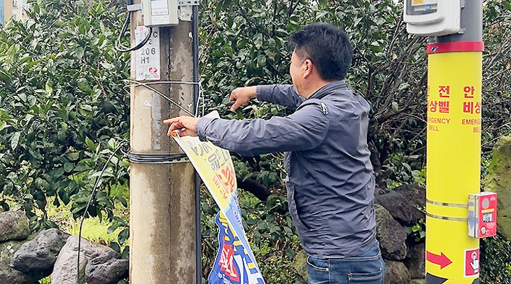 서귀포시 예래동(동장 나의웅)은 상춘객이 늘어남에 따라 지난 5일 관내 불법 현수막을 일제 정비해 현수막과 걸개 20개를 철거했다.