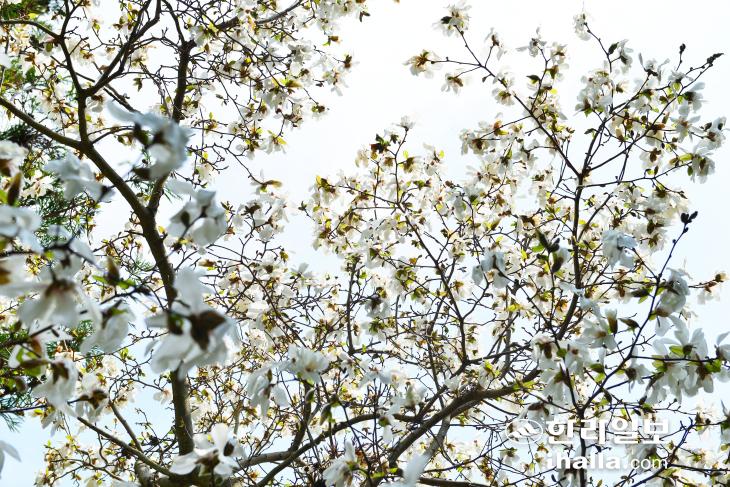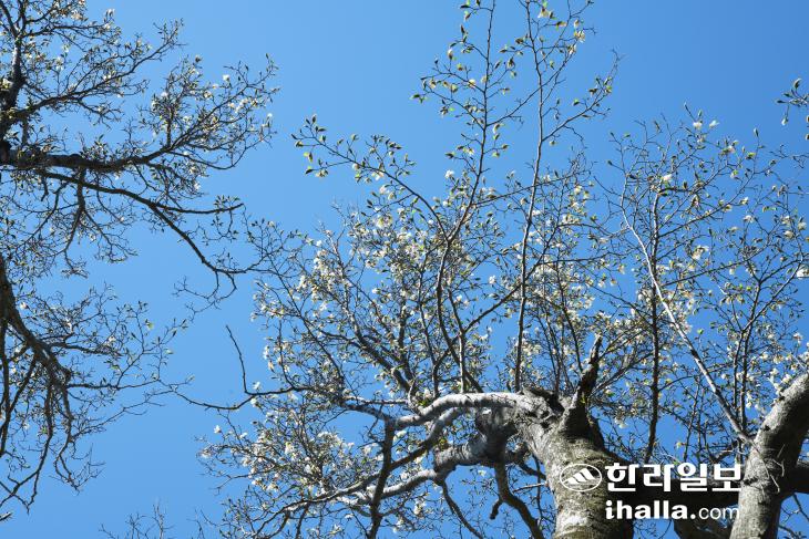 [한라일보] 제주 한라산에 자생하는 최고령 목련이 가지마다 순백의 꽃을 피웠다.
