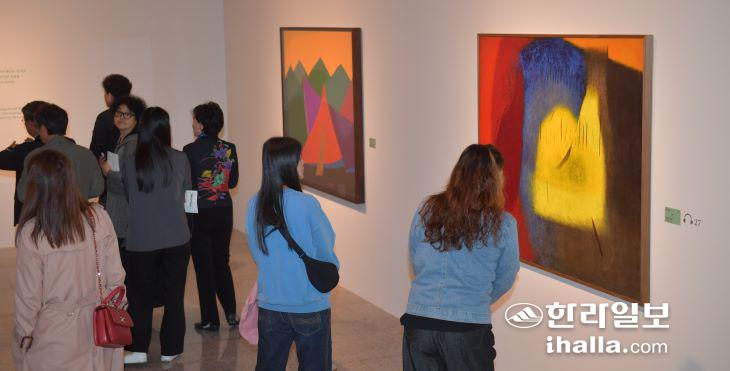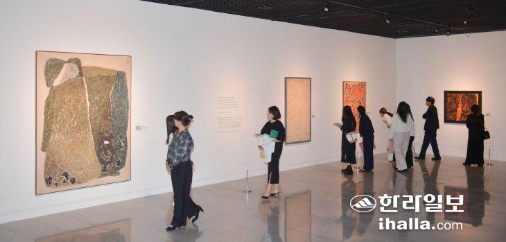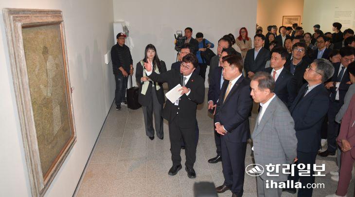 23일 본격 개막을 앞두고 22일 제주도립미술관에서 지역 예술인 등이 자리한 가운데 이건희 컬렉션 한국 근현대미술 특별전 '시대유감(時代有感)' 개막식을 겸한 프리뷰가 진행됐다. 예술인 등이 개막식 행사 후 전시장을 둘러보고 있다. 이상국기자