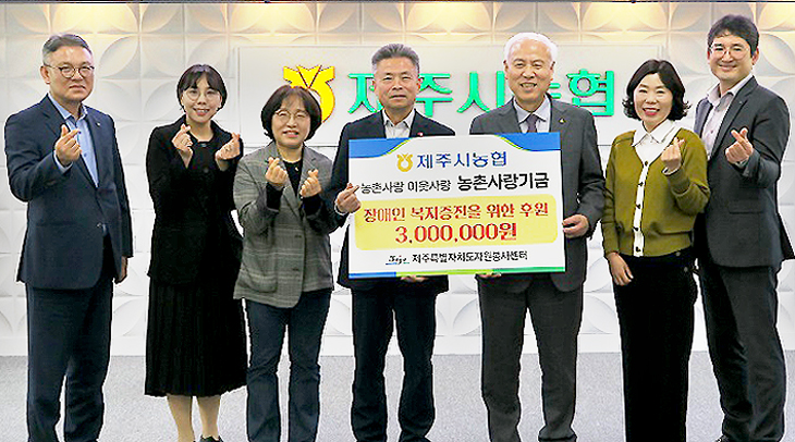 제주시농협(조합장 고봉주)은 지난 20일 '장애인의 날'을 맞아 제주특별자치도자원봉사협의회에 제주지역 장애인의 복지 증진을 위한 농촌사랑기금 300만원을 기탁했다.