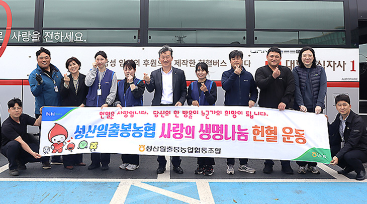서귀포시 성산일출봉농협(조합장 강석보)은 지난 22일 본점 주차장에서 대한적십자사 제주혈액원과 연계해 사랑의 생명나눔 헌혈운동을 실시했다.