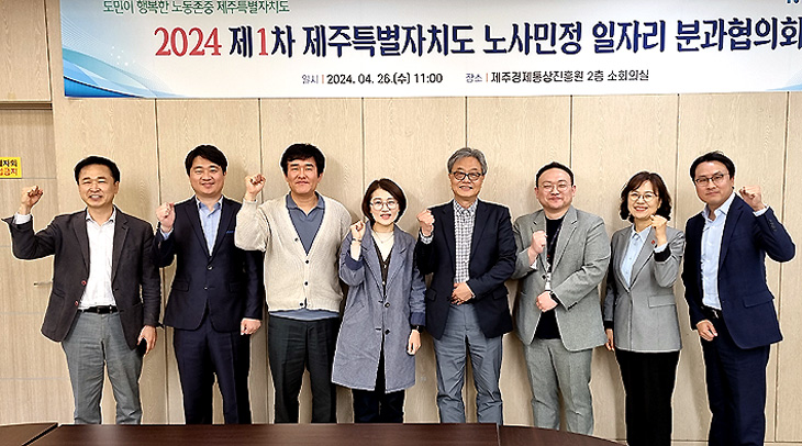 제주특별자치도 노사민정협의회(위원장 오영훈)는 24일 오전 제주경제통상진흥원 소회의실에서 '2024 제1차 제주특별자치도 노사민정 일자리 분과협의회'를 개최했다.