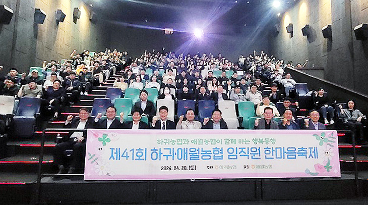 제주시 하귀농협(조합장 강병진)과 애월농협(조합장 김병수)은 지난 20일 CGV노형에서 '제41회 하귀·애월농협 임직원 한마음 축제'를 개최했다.