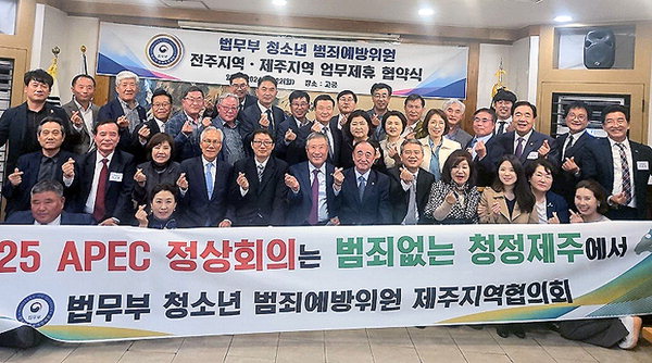 법무부 청소년 범죄예방위원 제주지역협의회 (회장 고영두)는 지난 22일 전주시에 위치한 고궁에서 전주지방검찰청 이창수 검사장을 비롯한 검찰관계자 등 70여명이 참가한 가운데 법무부 청소년범죄예방위원 전주지역협의회(회장 김홍식)와 업무협약식을 개최했다.