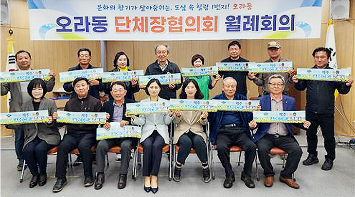 제주시 오라동단체장협의회(회장 진영진)는 최근 주민센터 회의실에서 4월 정례회의를 개최해 단체별 활동 상황 공유하고 2024 방선문축제 등 지역 현안을 논의했다. 또 이날 오라동 각 단체장들은 2025년 APEC 제주 유치를 위한 결의를 다졌다.