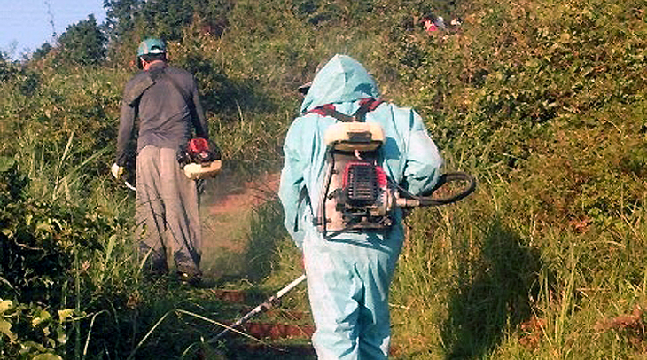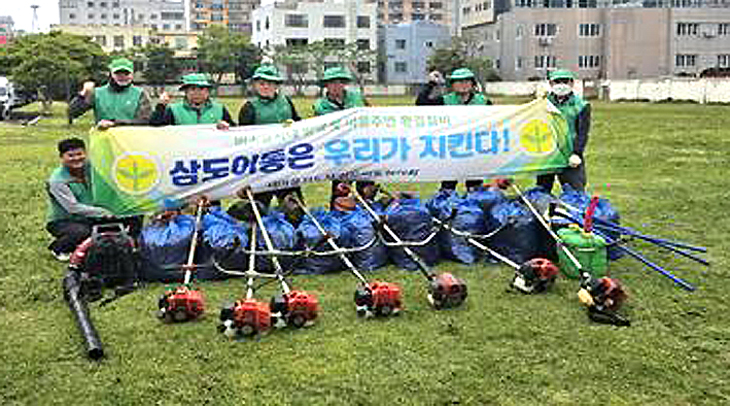 제주시 삼도2동새마을지도자협의회(회장 이대중)는 지난 21일 제주목관아 영주관 객사터에서 잡풀을 베는 등 환경 정비 활동을 했다. 이대중 회장은 "쾌적한 동네 만들기에 노력하겠다"고 말했다.