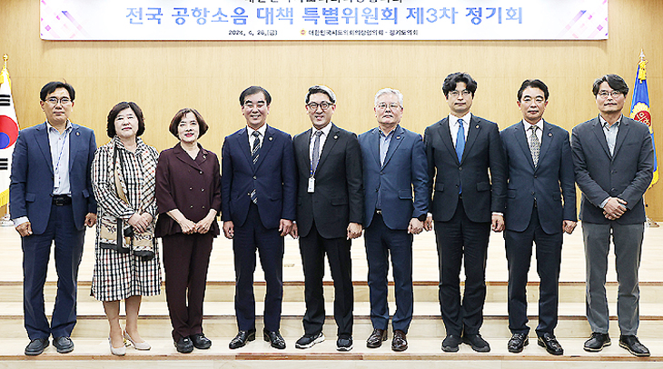 대한민국시도의회의장협의회 전국공항소음대책특별위원회(위원장 김황국 제주도의회 부의장)는 지난 26일과 27일 양일간 경기도의회 대회의실에서 제3차 정기회를 개최했다. 이번 정기회에서는 공항소음 방지 및 소음대책지역 지원에 관한 법률을 비롯한 동 시행령 및 시행규칙 등에 대한 개정 건의문을 채택했고, 전국공항소음특위 존속 기한 및 위원 임기 연장 등 관련 규정 개정 건의안을 의결했다.