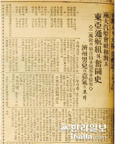 [한라일보] 동아통항조합의 결성과 교룡환의 첫 취항은 식민지시대를 살았던 제주사람뿐만 아니라 조선인의 자랑이고 긍지의 표상이었다. 당대 주요 일간지는 사실보도 기사, 시평 및 기고문, 탐방기사 등을 통해 동아통항조합의 활약상을 대서특필했다. 조선일보(1930.11.13.)에 실린 홍양명의 '동아통항조합과 제주도민의 궐기' 기고문은 조합의 출범과 교룡환 취항이 제주도민의 힘으로 이루어낸 성과라고 소개했다.