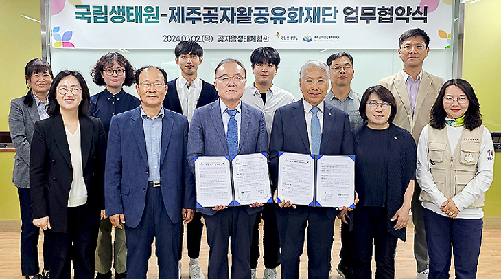 환경부 산하 국립생태원(원장 조도순)과 제주곶자왈공유화재단(이사장 김범훈)은 지난 2일 재단에서 업무협약을 체결하고 ▷곶자왈 생물다양성과 생태계에 대한 학술조사 및 교류 ▷생물자원 수집 및 전시, 홍보, 교육 등에 대한 상호 교류 및 협력 ▷관련 시설과 장비의 구축과 활용 등에 적극 협력하기로 했다.