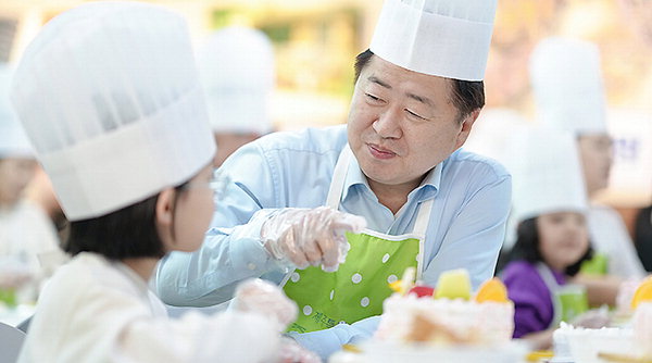 이날 아이들은 제과 전문가의 설명을 들으면서 오영훈 지사와 존셈봉사회 회원들과 함께 고양이와 하트 모양 등 다양한 케이크 만들기를 체험했다.
