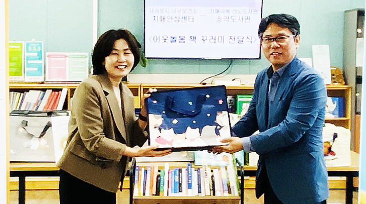 서귀포시 서부보건소(소장 윤점미)와 송악도서관(관장 황정식)은 지난 2일 치매 고위험군과 영유아 대상 '이웃 돌봄 책꾸러미 사업' 연계 운영을 위해 '책꾸러미 전달식'을 가졌다.