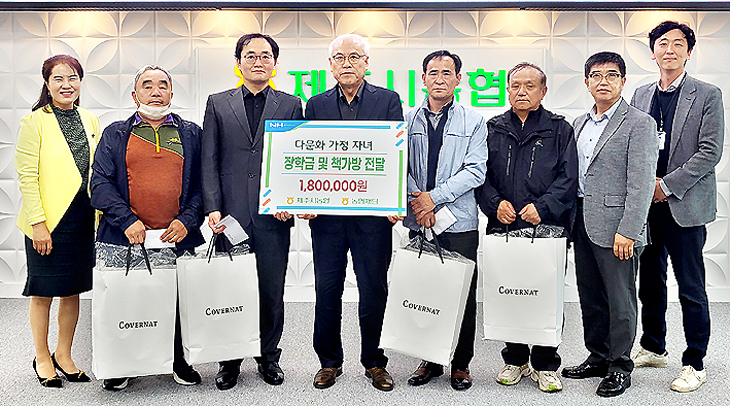 제주시농협(조합장 고봉주)은 지난달 30일 농협 본점에서 농촌 다문화가정 자녀 6명에게 장학금 총 180만원(각 30만원씩)을 전달했다. 또 조합원 다문화 가정 중 학생 자녀가 있는 35개 농가에 책가방 1세트를 각각 전달했다.