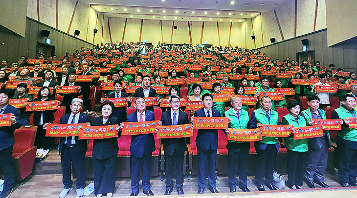 또한 이날 2025 APEC 정상회의 제주 유치를 위한 결의대회를 개최해 참가자 전원이 대회 유치를 위한 목소리를 높였다.
