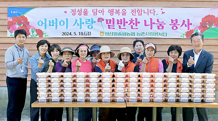 서귀포시 성산일출봉농협(조합장 강석보)은 지난 10일 농촌사랑봉사단(회장 김애숙) 임직원 15명과 함께 토심영농조합법인에서 '어버이사랑 밑반찬 나눔 행사'를 실시했다.