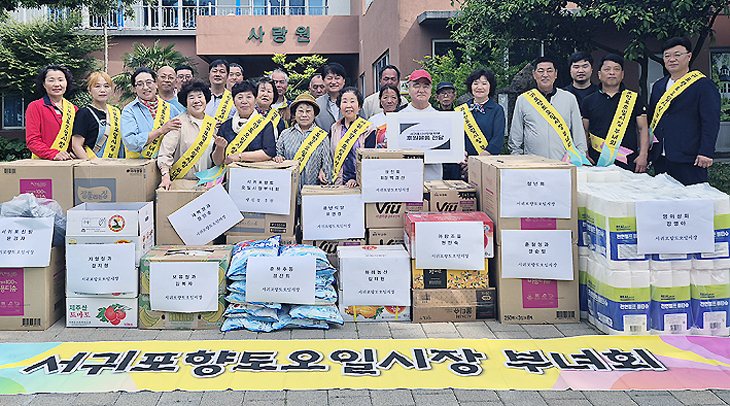 서귀포향토오일시장부녀회(회장 강영아)는 20일 서홍동 소재 사회복지시설 서귀포시사랑원을 방문해 소외계층을 위한 150만원 상당의 생필품을 기부했다.