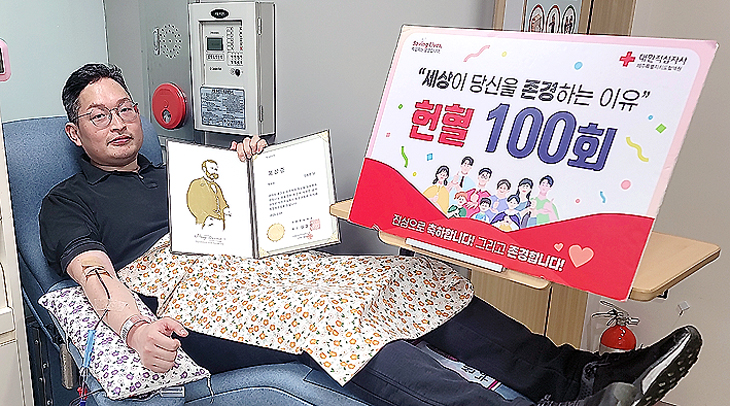 김 경장은 "헌혈은 생명나눔을 실천하는 가장 보람되고 값진 봉사"라며 "100회라는 숫자에 연연하지 않고 앞으로도 꾸준히 이웃 사랑을 실천해 수혈이 필요한 사람들에게 선한 영향력을 주고 싶다"고 말했다.