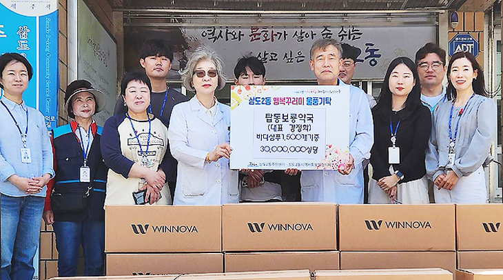 제주시 탑동보룡약국(대표 강정화)은 지난 21일 삼도2동주민센터를 찾아 이웃사랑 물품(바디샴푸) 1500개(3000만원 상당)를 기탁했다