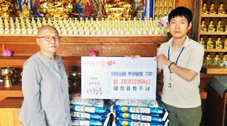 서귀포시 대정읍 소재 법주사는 지난 20일 신도들이 기부한 나눔 쌀(20포, 200㎏)을 대정읍에 기탁했다.