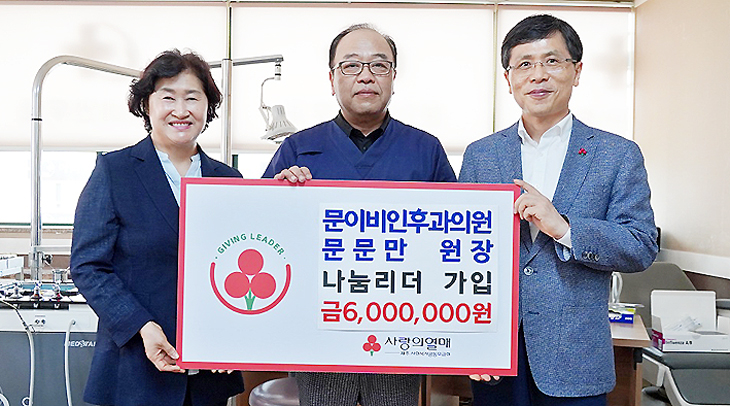 문문만 문이비인후과의원 원장(제주나눔리더 144호)은 지난 21일 제주사회복지공동모금회(회장 강지언) 나눔리더에 성금 300만원을 기탁하고 나눔리더 실버 회원으로 가입했다.