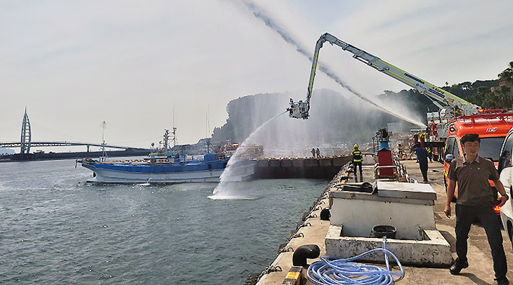 이날 훈련에는 소방, 해경, 수협, 어선주 협회 등이 참여한 가운데 장비 14대 및 인원 60명이 동원됐으며, 선박화재 초기 대응, 해수 이용 방수 훈련 등이 이뤄졌다.