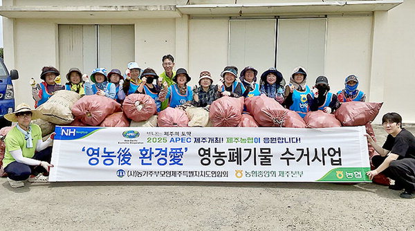 농협제주본부(본부장 윤재춘)와 농가주부모임제주도연합회(회장 현효숙)는 22일 제주시 조천읍 함덕리 일원에서 제주농협 임직원, 농가주부모임 회원 등 20여 명이 참여한 가운데 영농폐기물 수거 캠페인을 벌였다.