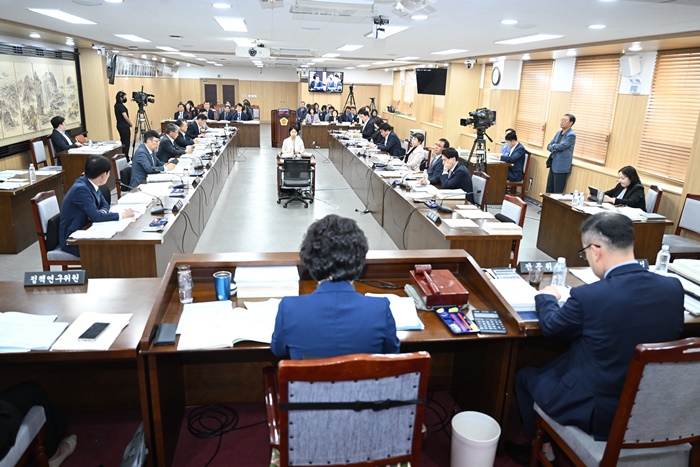 이날 회의에서는 학교 급식실 인력 충원과 급식 노동자에 대한 처우 개선이 이뤄져아 한다는 의원들의 지적이 이어졌다.