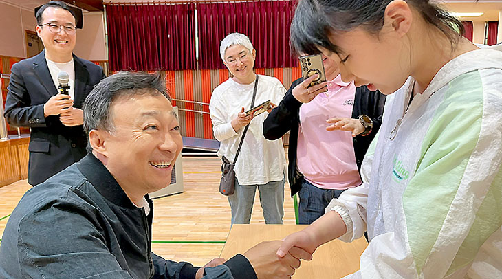 영화 '서울의 봄', 드라마 '재벌집 막내아들' 등 다수의 작품 활동을 통해 뛰어난 연기력으로 이름을 알린 배우 이성민은 영송학교 학생들에게 힘찬 응원과 격려의 마음을 전달하기 위해 학교에 방문했다.