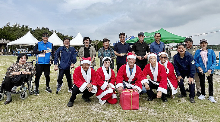 서귀포시 표선면 주민자치위원회(위원장 안창언)는 지난 1일 표선해수욕장에서 열린 '표선면 4계절 크리스마스 예술제'에서 여름 산타클로스로 변신해 나눔을 실천했다.