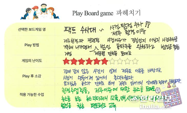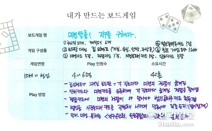 "게임이란 뭘까?", "게임의 종류는?", "게임은 누가 만들었고 어떻게 발전해 왔을까?"라는 질문을 던지면서 수업을 진행한다. 특히 경주 연못 펄바닥에서 나온 14면체 주사위 '주령구'를 소개하며 통일신라 때도, 어른들도 게임을 좋아했다는 이야기를 전할 때쯤 묘한 동질감을 느끼는 것도 같다.