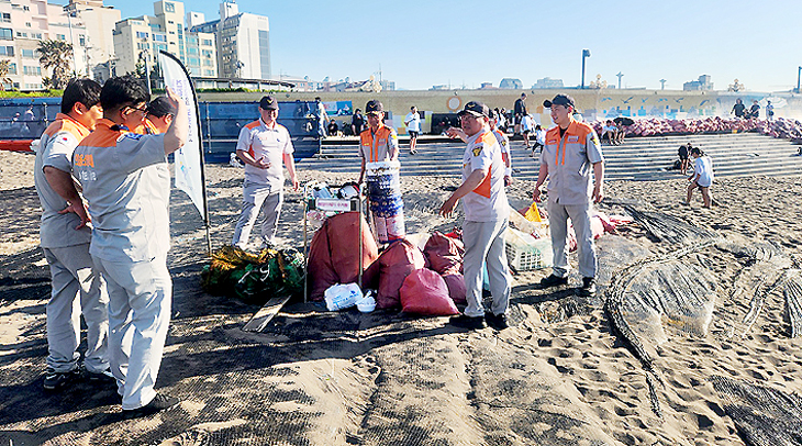 화북의용소방대(대장 강재천)는 지난 2일 제주시 삼양검은모래해변에서 해수욕장 개장을 앞두고 버려진 해양쓰레기, 폐어구를 수거하는 환경정화 활동을 펼쳤다.