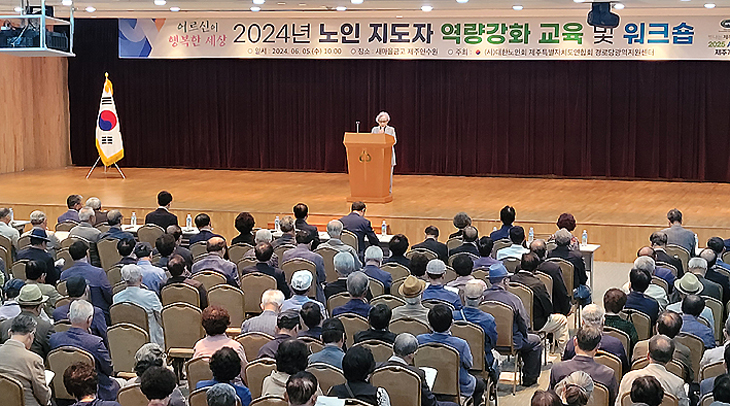 (사)대한노인회 제주도연합회(회장 김인순) 경로당광역지원센터는 지난 5일 새마을금고 제주연수원에서 2023 노인지도자 역량강화 교육 및 워크숍을 열었다.