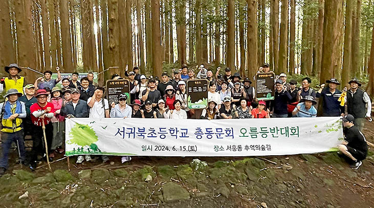 서귀북초등학교총동문회(회장 강성극)는 지난 15일 회원 100여 명이 참석한 가운데 서귀포시 서홍동 소재 추억의 숲길에서 동문들의 화합을 다지는 오름등반 대회를 개최했다.